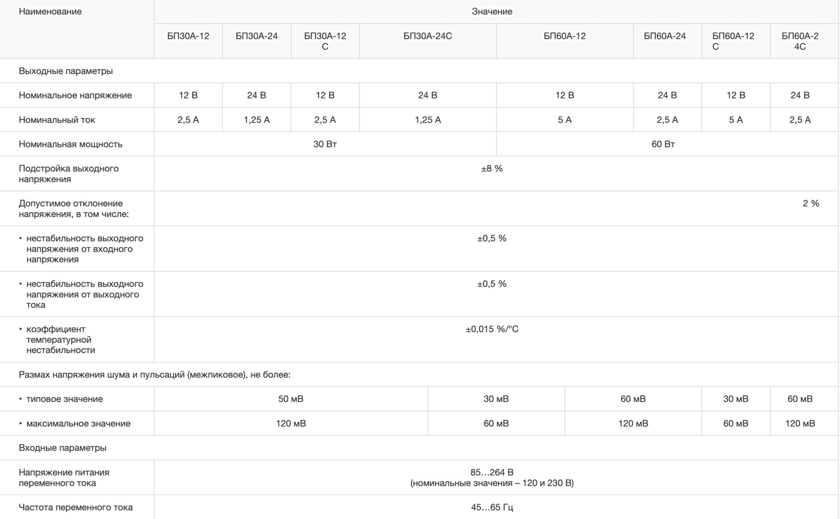 Блоки питания БП30А, БП60А автоматически ограничивают выходной ток в диапазоне 110±5 % от номинального.