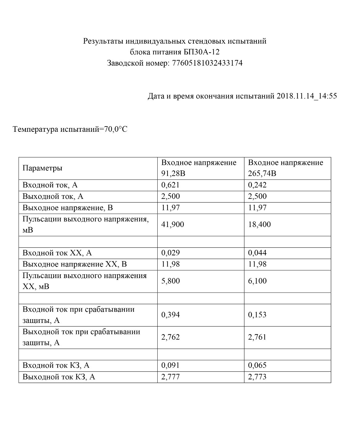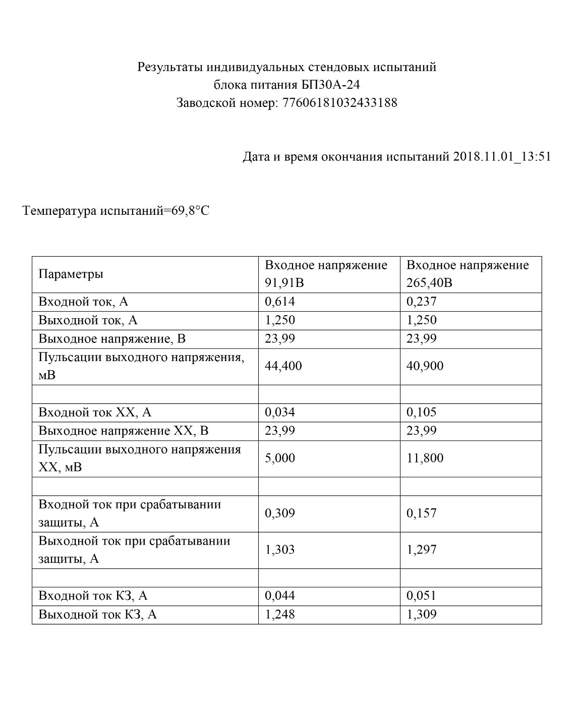 Пример индивидуальных стендовых испытаний блока питания БП30А-12 Пример индивидуальных стендовых испытаний блока питания БП30А-24