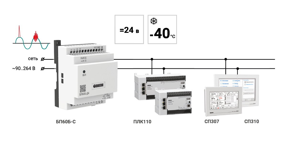 Блоки питания ОВЕН БП30Б-С, БП60Б-С, БП120Б-C предназначены для питания стабилизированным напряжением 24 В постоянного тока приборов автоматики и других радиоэлектронных устройств. Преимущества блоков питания для тяжелых условий эксплуатации ОВЕН БП30Б-С, БП60Б-С, БП120Б-C: