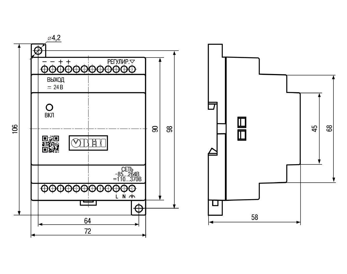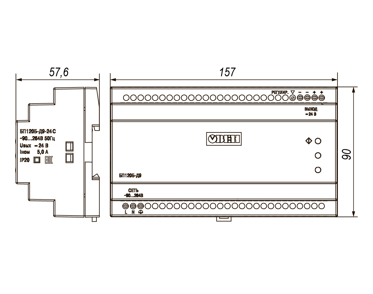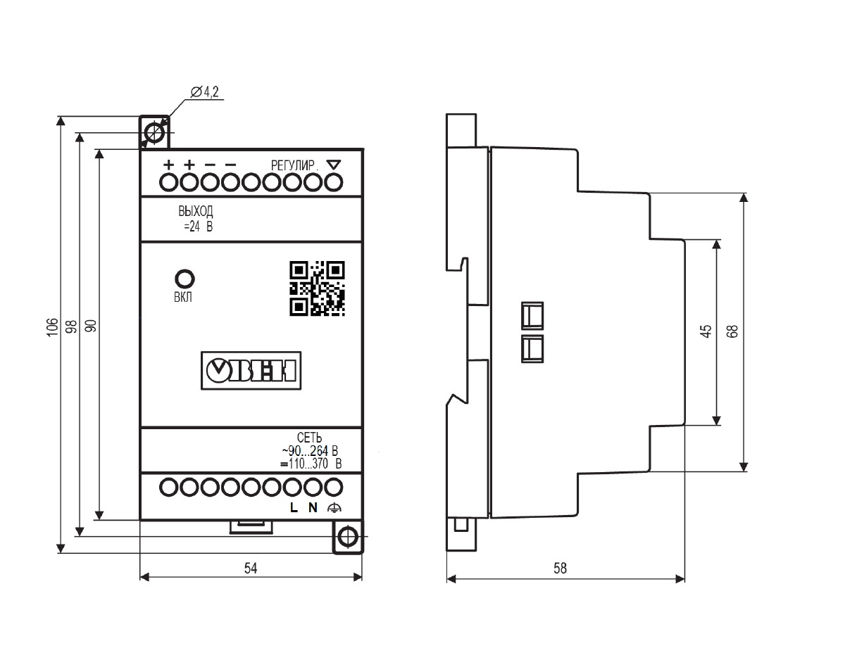 Габаритные размеры ОВЕН БП30Б-С Габаритные размеры ОВЕН БП60Б-С Габаритные размеры ОВЕН БП120Б-С