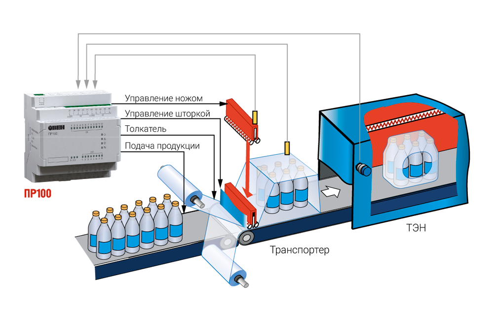 Управление подсчётом, движением и упаковкой продукции– DI/DO на борту.