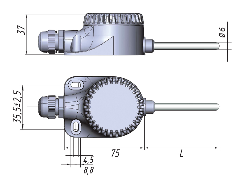 Для монтажа датчиков ДТСхх5 на объекты рекомендуется применять гильзы ГЗ.16 и ГЗ.25, бобышки Б.П.1, Б.П.2 и Б.У.1, а также съемные подвижные штуцеры ШП. При изменении температуры выше 120 ⁰С рекомендуем использовать датчики с металлической головкой. Стандартный срок производства – от 5 рабочих дней