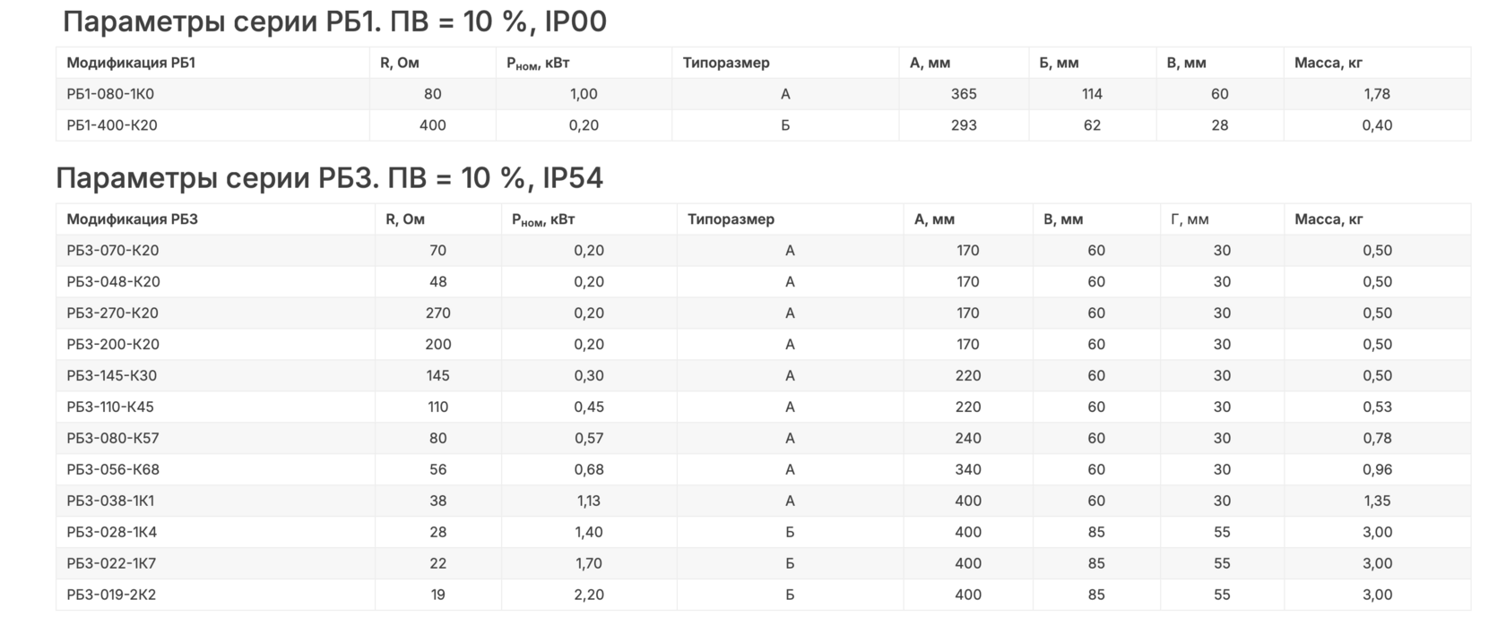 Резисторы РБ1 представляют собой проволочные балластные резисторы с керамическим корпусом и степенью защиты IP00. Линейка включает в себя 2 типа резисторов: