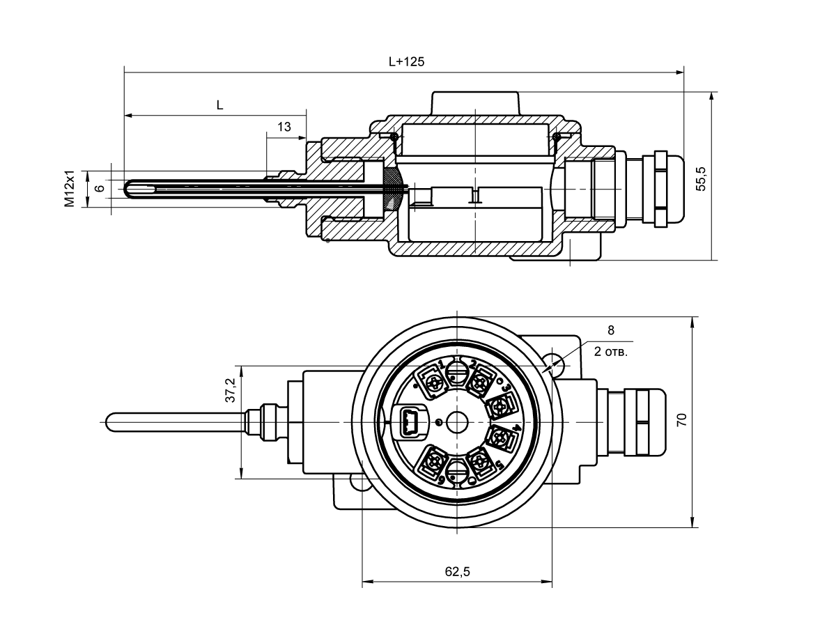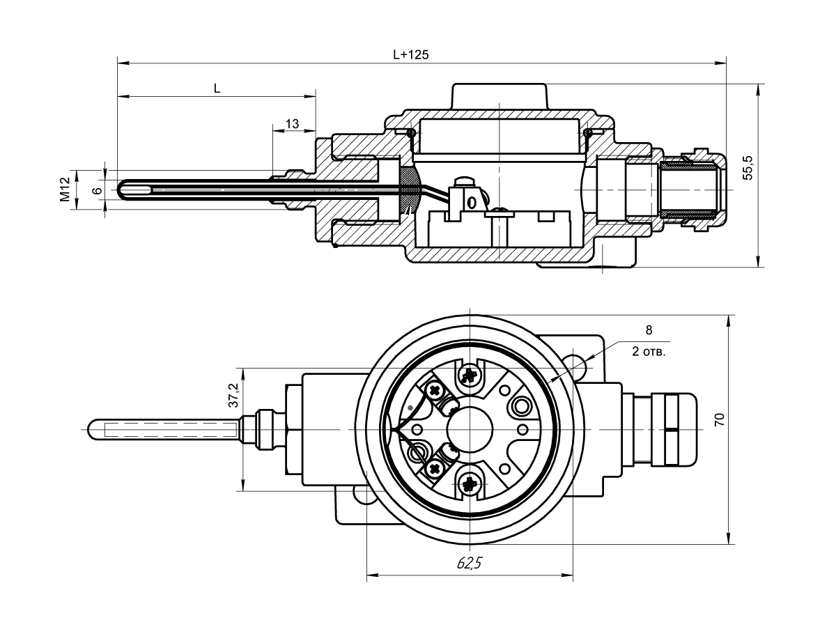 ДТС125Л.МГ Сопротивление 50М, 100М 50П,100П РТ100, РТ1000 A, В, C 2-, 3-, 4-проводная -40…+200 60, 80, 100