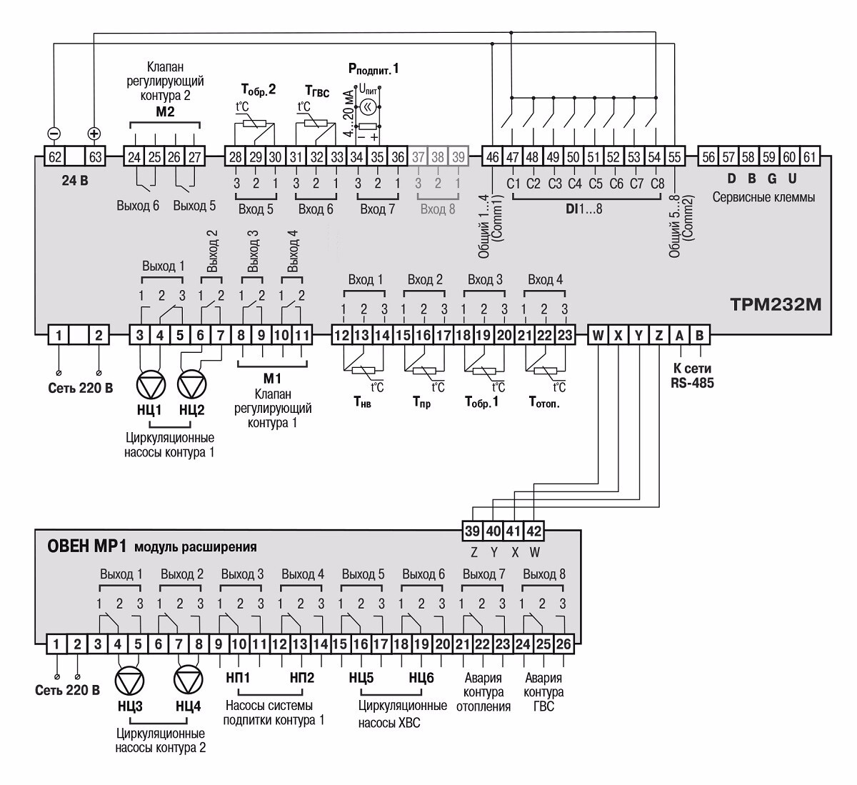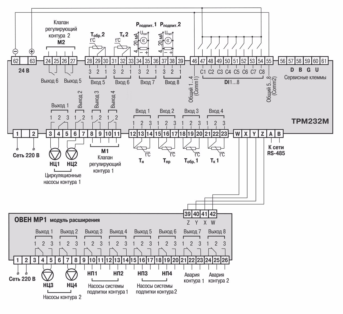 Модуль расширения для ТРМ232М требуется при работе с конфигурациями №4 и №5