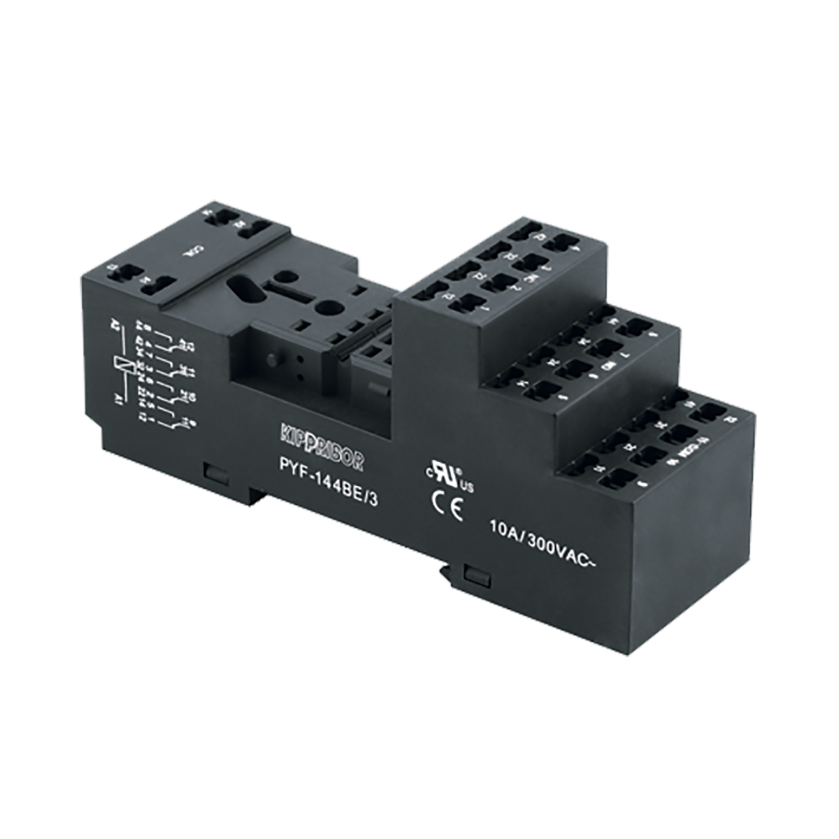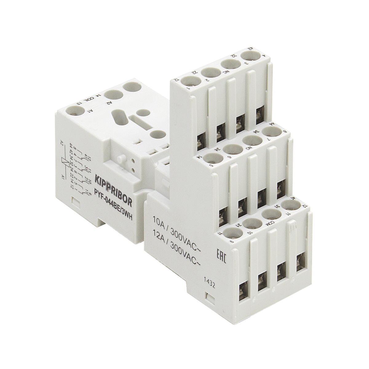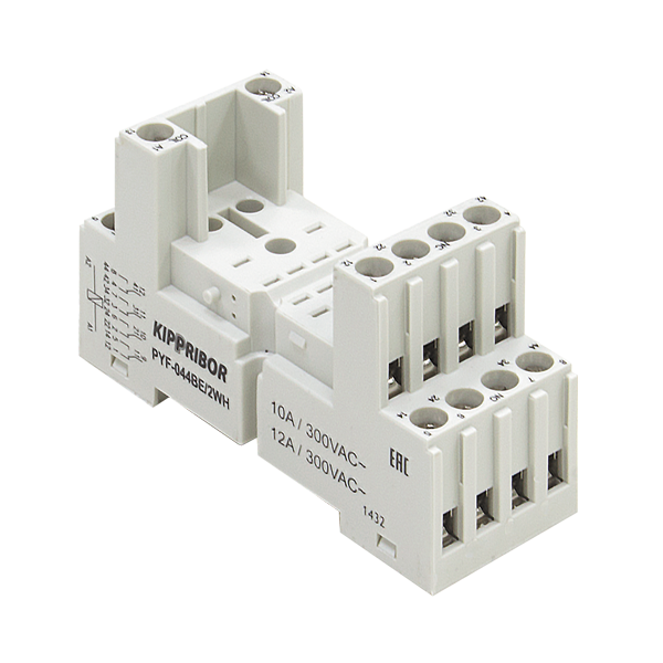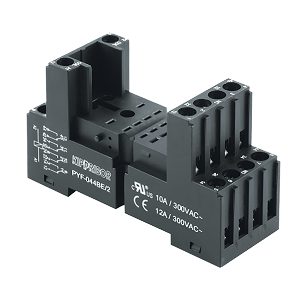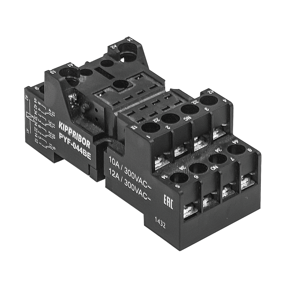 Монтажные колодки KIPPRIBOR PYF-044 и PYF-144 предназначены для установки на стандартную DIN-рейку или плоскость 4-контактных промежуточных реле различных производителей. Изготавливаются из негорючего, прочного и упругого материала (ПА66 + графит), устойчивого к ошибкам при монтаже и эксплуатации. Аксессуары: в комплект поставки входит маркировочная пластинка (для всех колодок, кроме одноярусной PYF-044BE. Дополнительно можно приобрести модуль LED-индикации LM-EN или LM-CF и пластмассовый удерживающий зажим BS-4/36P для фиксации промежуточных реле высотой 36 мм.