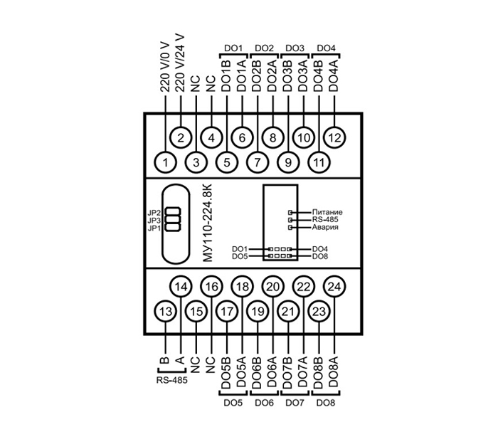 Модули предназначены для управления по сигналам из сети RS-485 встроенными дискретными выходами, используемыми для подключения исполнительных механизмов с дискретным управлением.